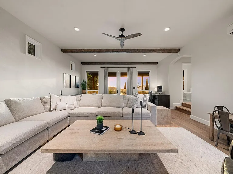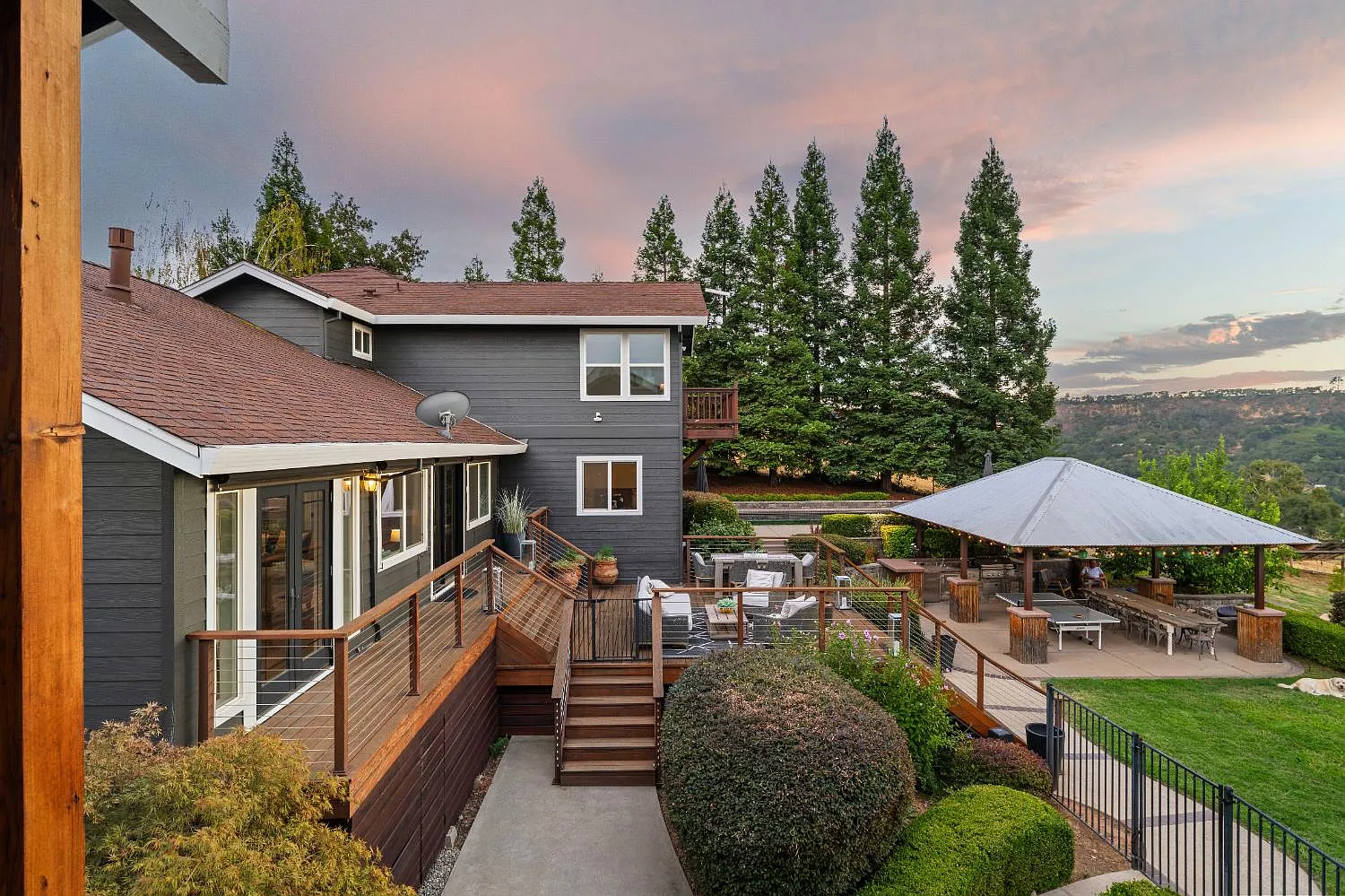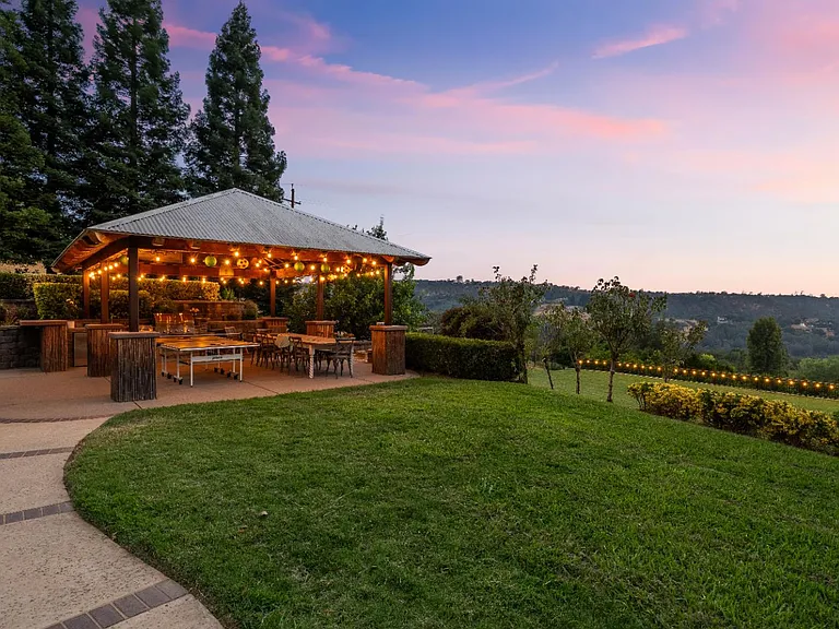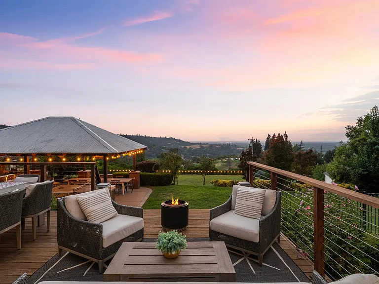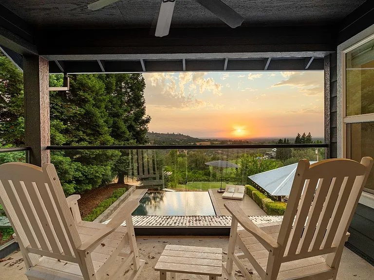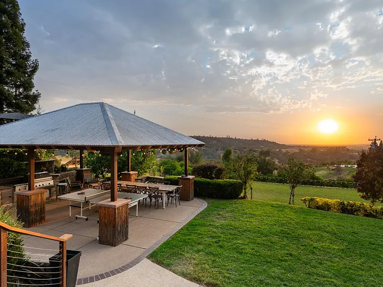 This gorgeous country estate is set on 1.2 acres of green rolling hills, and captures incredible views of the butte mountains, city lights, golden sunsets, and lush orchards. Every detail of this remodeled 3,695 sqft home has been thoughtfully curated from wide-plank hardwood floors and custom cabinetry to Taj Mahal quartzite countertops, intricate tilework, and hand-finished stone and brick accents. The home offers 4 bedrooms, 4 full baths, and 2 half baths, including a serene primary suite with heated bathroom floors for ultimate comfort. The chef's kitchen, outfitted with brand-new luxury appliances, flows effortlessly into generous living spaces designed for both gathering and entertaining. Step outside to your own private resort: a built-in BBQ, vibrant landscaping, and a sparkling infinity-edge salt water pool overlooking the hills. The land itself is just as special and very usable with a leveled field below, perfect for recreation, gardening, or even hosting elegant outdoor events. Surrounding the estate, 48 mature mandarin trees and a variety of fruit-bearing trees. A private well, owned solar, and whole-house generator ensure complete sustainability, while an 900 sqft ADU with living quarters above the garage offers flexibility for guests or extended family.