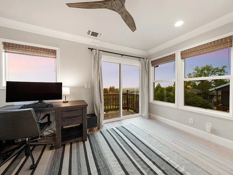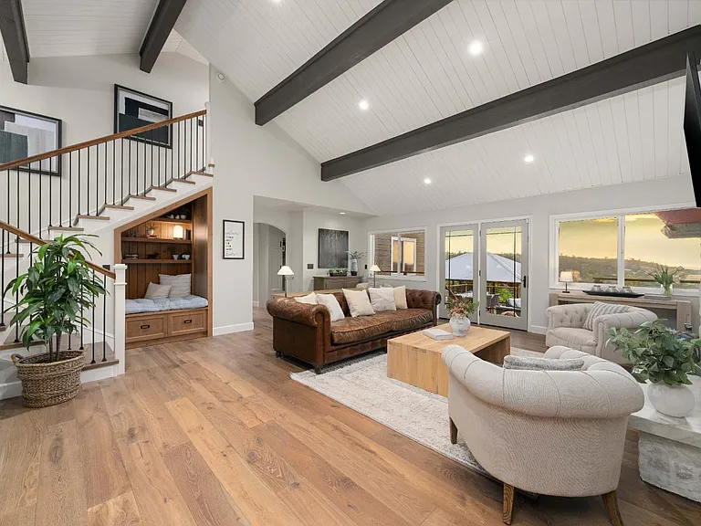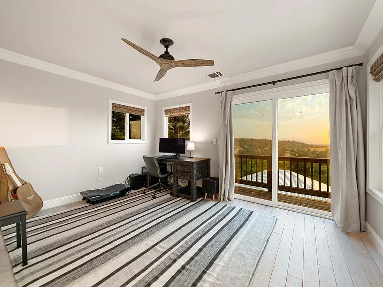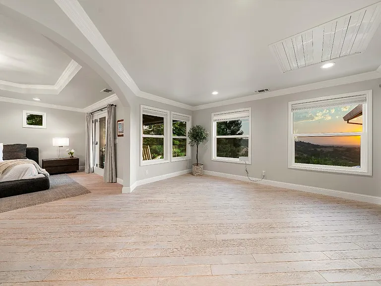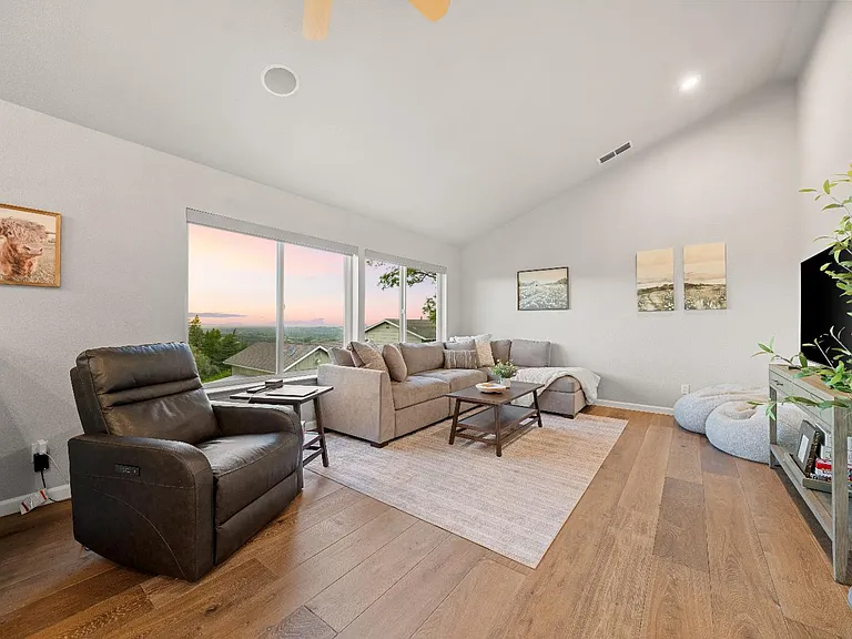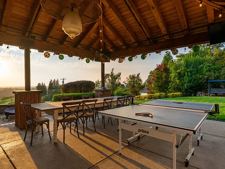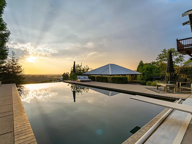 This gorgeous country estate is set on 1.2 acres of green rolling hills, and captures incredible views of the butte mountains, city lights, golden sunsets, and lush orchards. Every detail of this remodeled 3,695 sqft home has been thoughtfully curated from wide-plank hardwood floors and custom cabinetry to Taj Mahal quartzite countertops, intricate tilework, and hand-finished stone and brick accents. The home offers 4 bedrooms, 4 full baths, and 2 half baths, including a serene primary suite with heated bathroom floors for ultimate comfort. The chef's kitchen, outfitted with brand-new luxury appliances, flows effortlessly into generous living spaces designed for both gathering and entertaining. Step outside to your own private resort: a built-in BBQ, vibrant landscaping, and a sparkling infinity-edge salt water pool overlooking the hills. The land itself is just as special and very usable with a leveled field below, perfect for recreation, gardening, or even hosting elegant outdoor events. Surrounding the estate, 48 mature mandarin trees and a variety of fruit-bearing trees. A private well, owned solar, and whole-house generator ensure complete sustainability, while an 900 sqft ADU with living quarters above the garage offers flexibility for guests or extended family.
